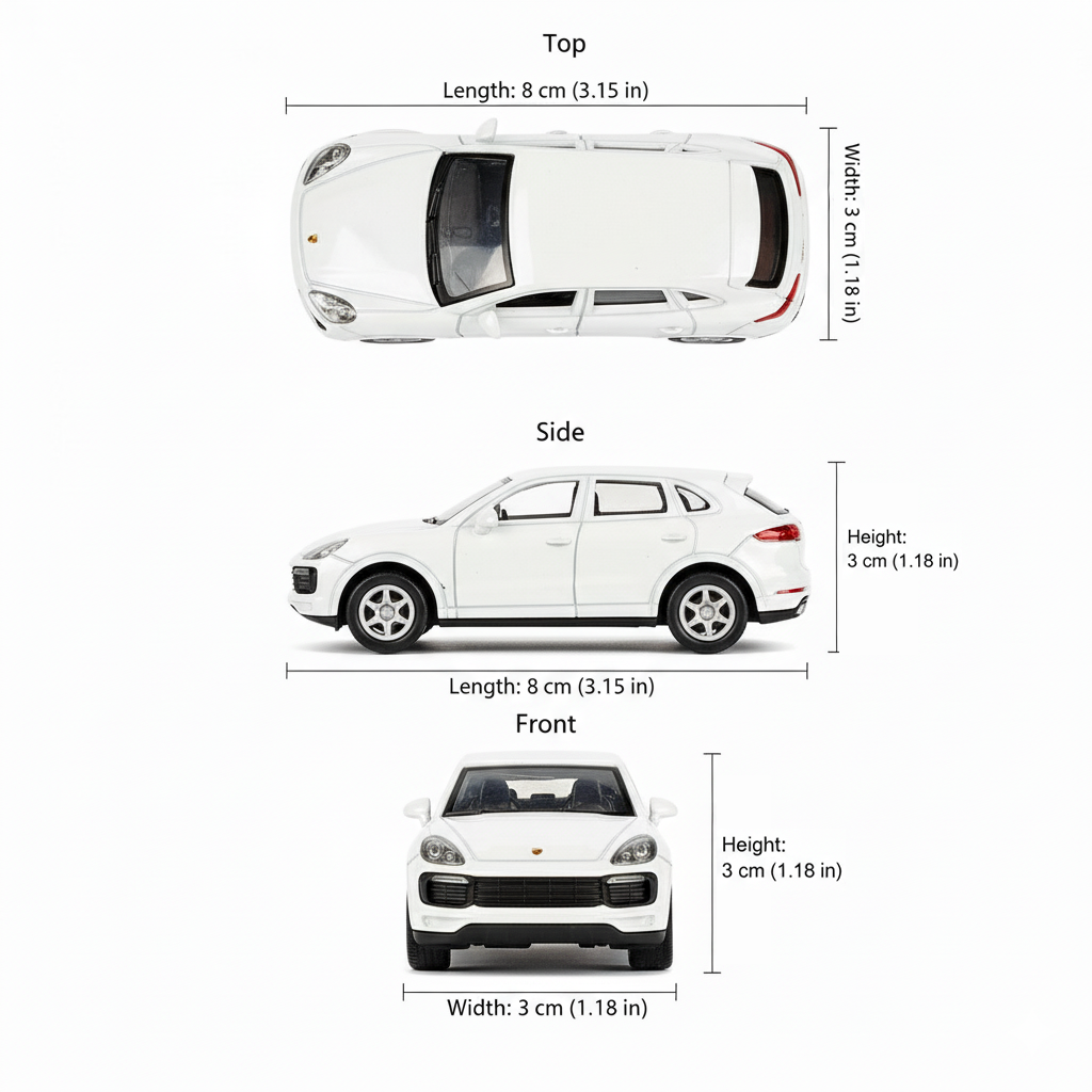 El modelo Porsche Cayenne Turbo, distribuido oficialmente por Toyng en Chile, representa una fiel réplica a escala de un clásico auto. Este vehículo miniatura es parte de la prestigiosa colección Welly, reconocida mundialmente por su atención al detalle y alta calidad en fabricación. Ideal tanto para coleccionistas como para amantes de los autos clásicos, Porsche Cayenne Turbo ofrece una oportunidad única de tener una pieza icónica en formato reducido. Su diseño captura con precisión las líneas originales del vehículo real, conservando elementos emblemáticos como faros, carrocería, y distintivos del modelo. Gracias a sus proporciones armoniosas de 7cm de largo, 3cm de ancho y 2cm de alto, esta miniatura es perfecta para estanterías, vitrinas, o para disfrutar en juego libre. Este producto está fabricado en materiales resistentes y seguros, ideales para todas las edades, con acabados en pintura de alta durabilidad que aseguran la conservación del color y el brillo. Cada unidad viene identificada con su número de item de sistema (W-52389), lo que permite una fácil gestión y control de stock. El Porsche Cayenne Turbo forma parte de una selección de modelos que abarcan desde autos deportivos históricos hasta vehículos utilitarios con gran historia, todos disponibles en Chile gracias a Toyng. Esta pieza no solo entretiene, también educa, incentivando el conocimiento automotriz desde la infancia y promoviendo la nostalgia entre coleccionistas adultos. ¡Haz que tu colección cobre vida con esta réplica Welly y añade historia y carácter a cada rincón!