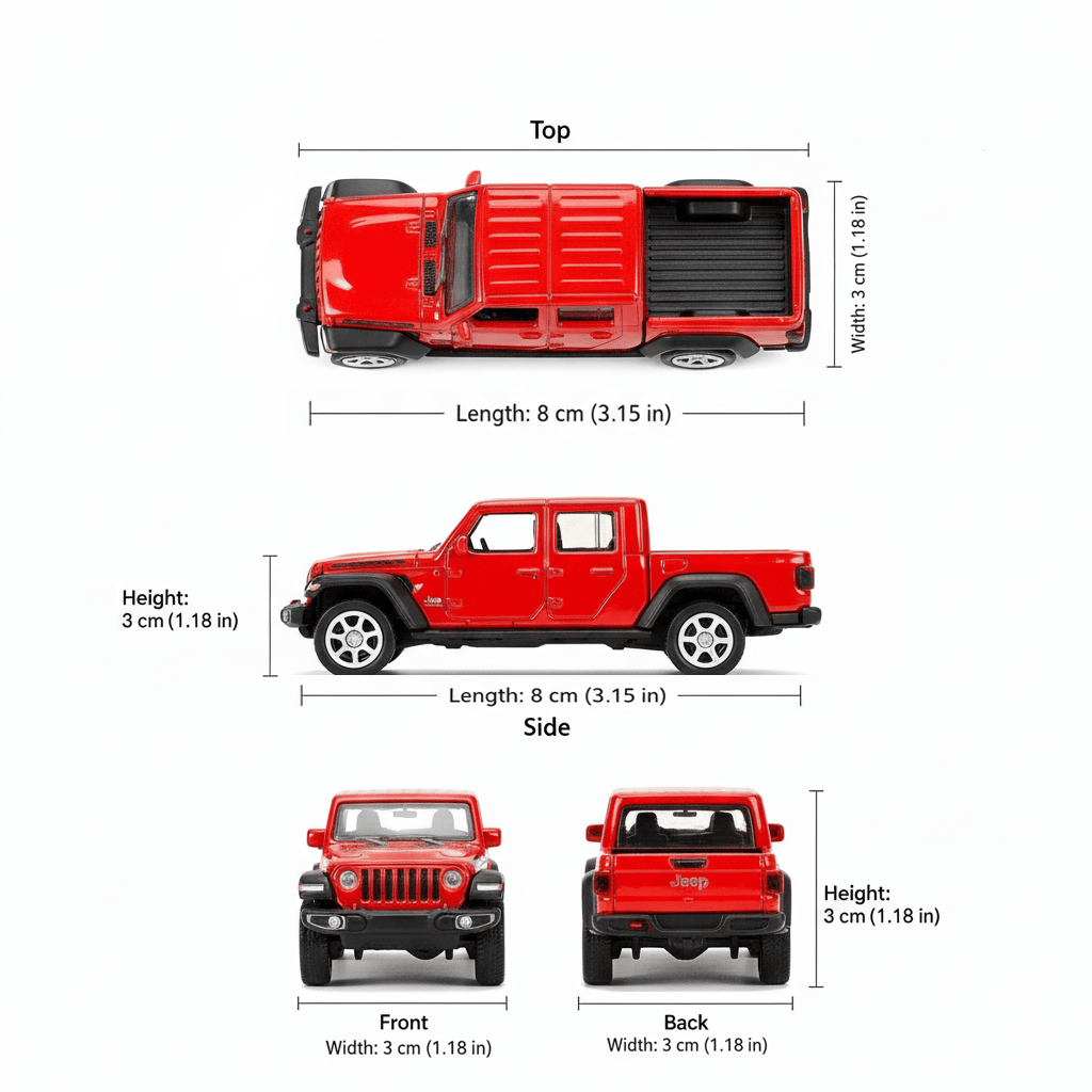 El modelo Jeep Gladiator, distribuido oficialmente por Toyng en Chile, representa una fiel réplica a escala de un clásico suv. Este vehículo miniatura es parte de la prestigiosa colección Welly, reconocida mundialmente por su atención al detalle y alta calidad en fabricación. Ideal tanto para coleccionistas como para amantes de los autos clásicos, Jeep Gladiator ofrece una oportunidad única de tener una pieza icónica en formato reducido. Su diseño captura con precisión las líneas originales del vehículo real, conservando elementos emblemáticos como faros, carrocería, y distintivos del modelo. Gracias a sus proporciones armoniosas de 7cm de largo, 3cm de ancho y 2cm de alto, esta miniatura es perfecta para estanterías, vitrinas, o para disfrutar en juego libre. Este producto está fabricado en materiales resistentes y seguros, ideales para todas las edades, con acabados en pintura de alta durabilidad que aseguran la conservación del color y el brillo. Cada unidad viene identificada con su número de item de sistema (W-52395), lo que permite una fácil gestión y control de stock. El Jeep Gladiator forma parte de una selección de modelos que abarcan desde autos deportivos históricos hasta vehículos utilitarios con gran historia, todos disponibles en Chile gracias a Toyng. Esta pieza no solo entretiene, también educa, incentivando el conocimiento automotriz desde la infancia y promoviendo la nostalgia entre coleccionistas adultos. ¡Haz que tu colección cobre vida con esta réplica Welly y añade historia y carácter a cada rincón!