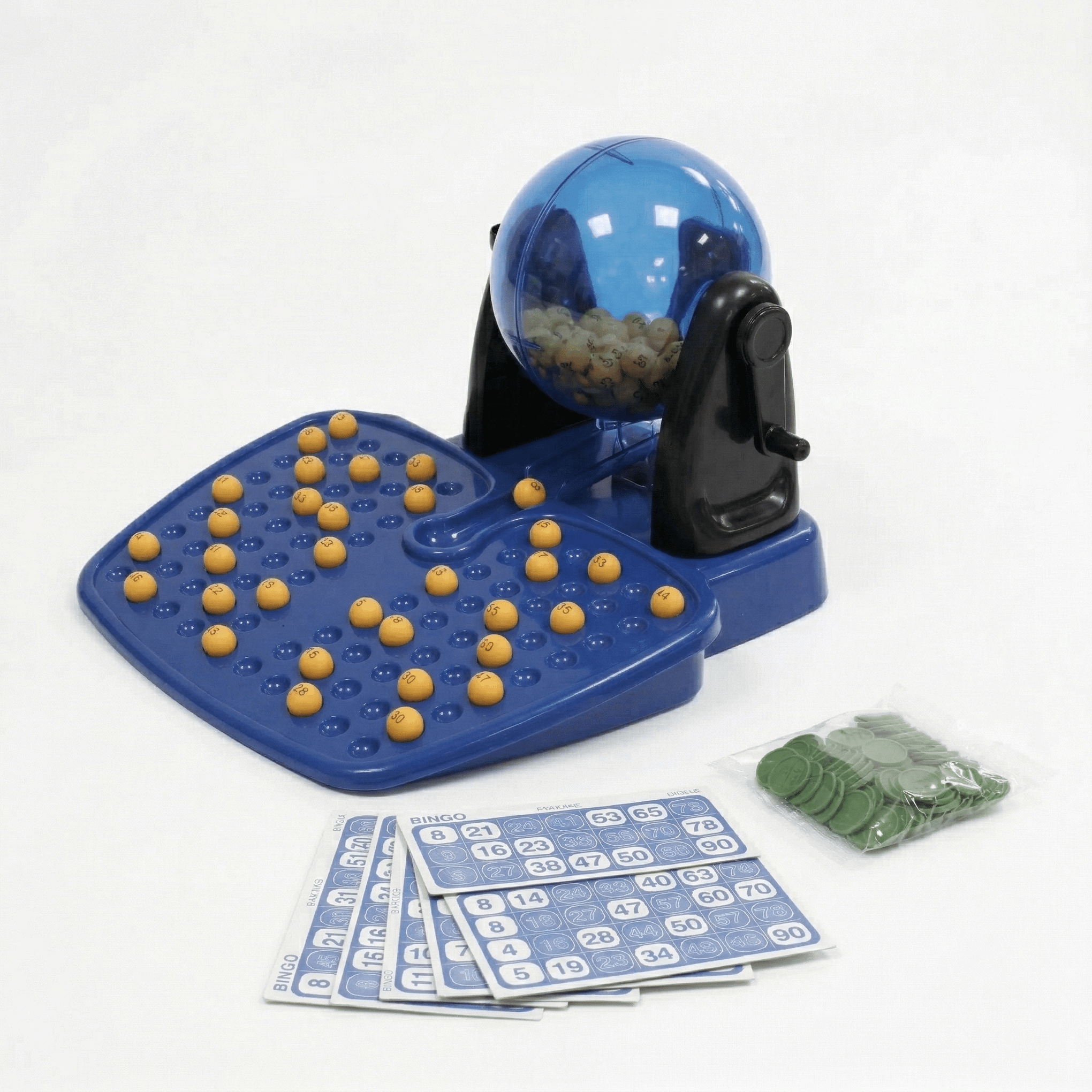 • Set completo: Incluye una tómbola giratoria, 90 números, 48 cartones y fichas, listo para empezar a jugar.