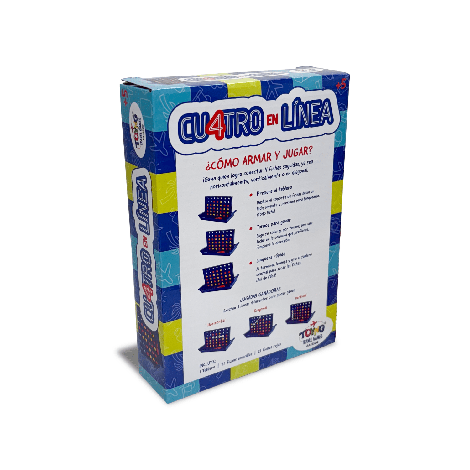 El Juego de Mesa Travel Game Cuatro en Línea – Toyng es un juego de estrategia y lógica diseñado para niños desde los 5 años, que enfrenta a dos jugadores en un desafío directo donde la observación, la anticipación y la toma de decisiones son fundamentales. Esta versión Travel Game adapta el clásico Cuatro en Línea a un formato compacto y portátil, manteniendo intacta la dinámica original del juego y permitiendo disfrutarlo tanto en casa como en viajes, vacaciones o momentos de espera.