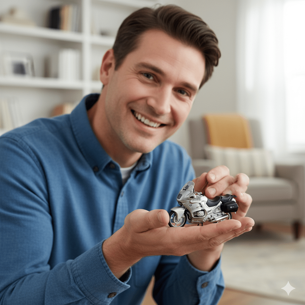 Conoce la BMW R1100 RT a Escala, una réplica detallada de una de las motocicletas más elegantes y emblemáticas de BMW. Este modelo a escala captura el diseño sofisticado y la funcionalidad de la moto original, convirtiéndolo en una pieza imprescindible para los amantes de las motocicletas y coleccionistas. Características destacadas: Diseño realista: Réplica precisa de la BMW R1100 RT, con detalles que reflejan la ingeniería y estética de la versión original. Material de alta calidad: Fabricada en metal y plástico resistente, garantizando durabilidad y un acabado premium. Ruedas funcionales: Equipadas con ruedas giratorias, ideales tanto para exhibición como para jugar. Compacta y elegante: Su tamaño es perfecto para vitrinas, estanterías o escritorios, complementando cualquier colección. Beneficios de la BMW R1100 RT a escala: Celebración del diseño: Rinde homenaje a una motocicleta icónica, perfecta para los entusiastas de BMW. Ideal para coleccionistas: Una adición imprescindible para quienes buscan modelos detallados y bien construidos. Regalo perfecto: Una opción única para sorprender a fanáticos de las motocicletas y del diseño automotriz. Ficha técnica: Dimensiones (Ancho x Largo x Alto): 7 cm x 16 cm x 10 cm. Peso: 0,45 kg. Material: Metal y plástico resistente. Escala: 1:18. Edad recomendada: A partir de 8 años. La BMW R1100 RT a Escala es un modelo que combina sofisticación y detalles excepcionales. ¡Añádela a tu colección o regálala a un amante de las motocicletas y disfruta de un diseño atemporal! Todos nuestros productos son fabricados en China, siguiendo altos estándares de calidad y en fábricas que cumplen con regulaciones internacionales. Además, nos enorgullece que gran parte de nuestros artículos estén elaborados con materiales reciclados, contribuyendo al cuidado del medio ambiente. Estamos comprometidos con la sostenibilidad y buscamos siempre innovar para ofrecerte productos responsables y eco-amigables.