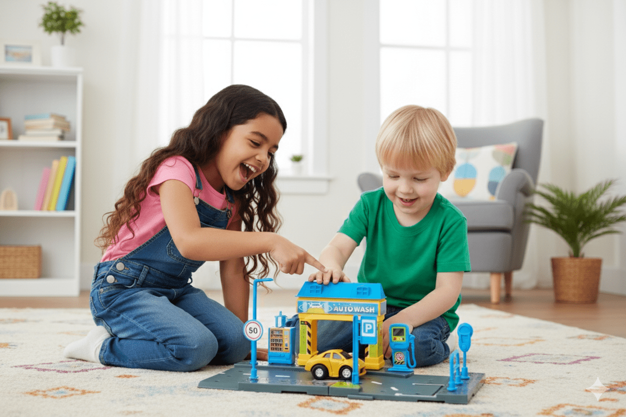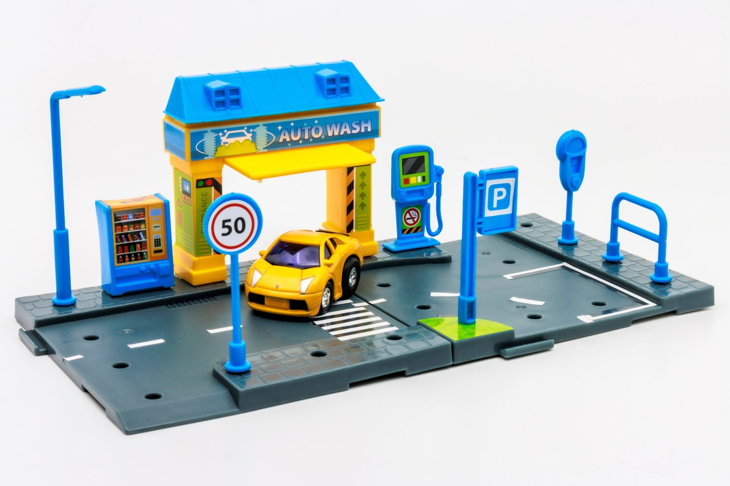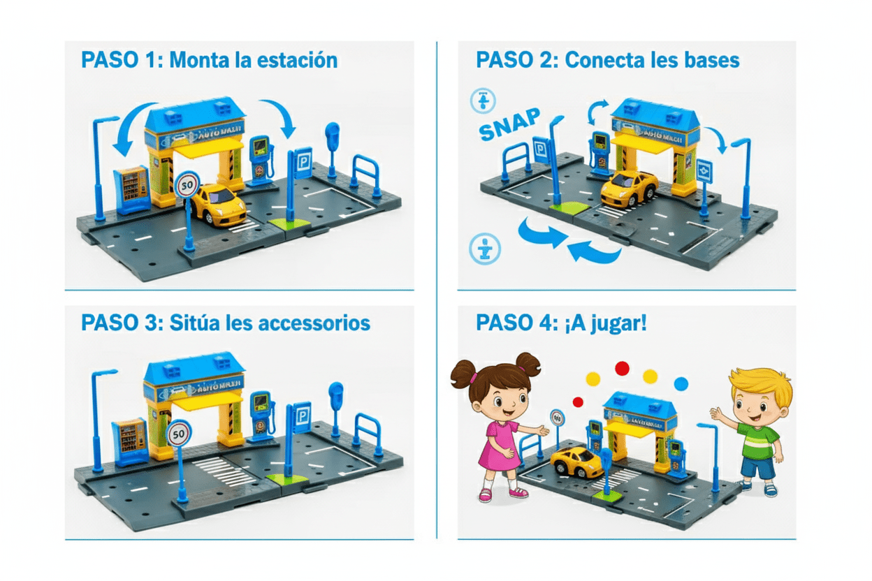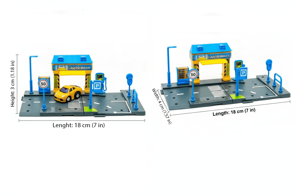 La Estación de Lavado de Auto incluye una serie de accesorios como mangueras, pistolas de lavado, una zona de secado y un área de agua, todo en un diseño compacto y funcional. Los niños pueden simular todo el proceso de lavado, desde mojar el auto hasta secarlo, mientras cuidan y mantienen sus modelos de autos a escala. ¡Es una excelente manera de combinar el juego con el aprendizaje de responsabilidades y hábitos de cuidado!
