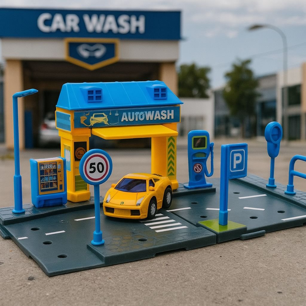 Diseño realista que simula una verdadera estación de lavado de autos.