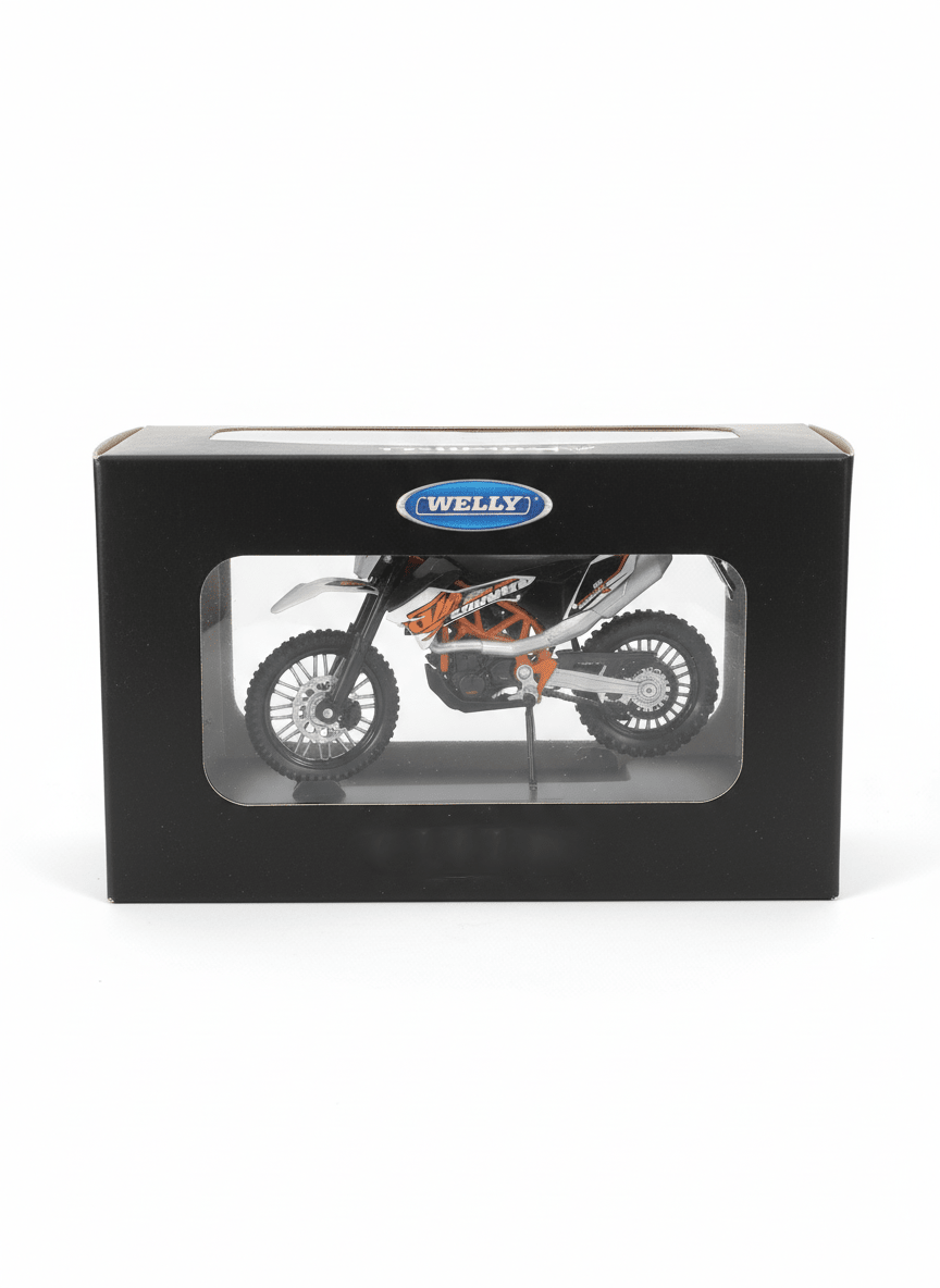 Moto a escala Welly modelo KTM 690 ENDURO R revive momentos únicos, adquiere el modelo de tus sueños y disfruta tener una moto a escala Welly. Coleccionalos todos.-Todos nuestros productos son fabricados en China, siguiendo altos estándares de calidad y en fábricas que cumplen con regulaciones internacionales. Además, nos enorgullece que gran parte de nuestros artículos estén elaborados con materiales reciclados, contribuyendo al cuidado del medio ambiente. Estamos comprometidos con la sostenibilidad y buscamos siempre innovar para ofrecerte productos responsables y eco-amigables.