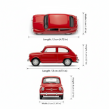 • Diseño auténtico: Réplica detallada del emblemático Fiat 600, con acabados que reflejan su diseño original.